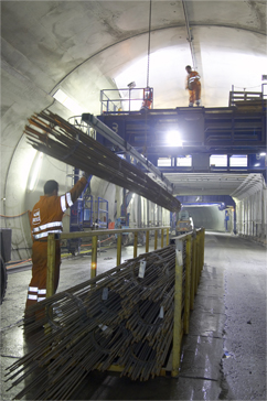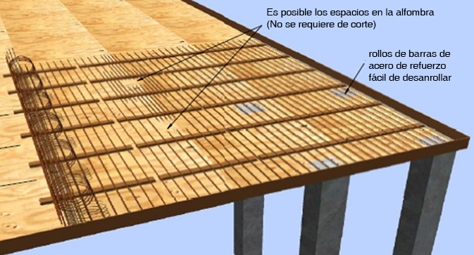 Siguiendo el concepto de instalación de una alfombra, se fabrican rollos de barras de acero